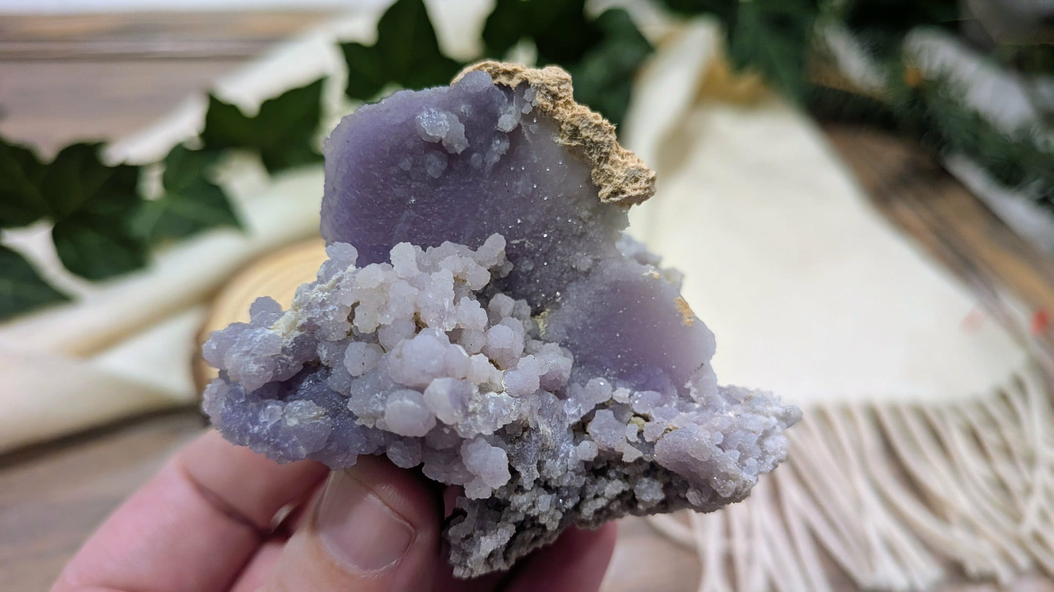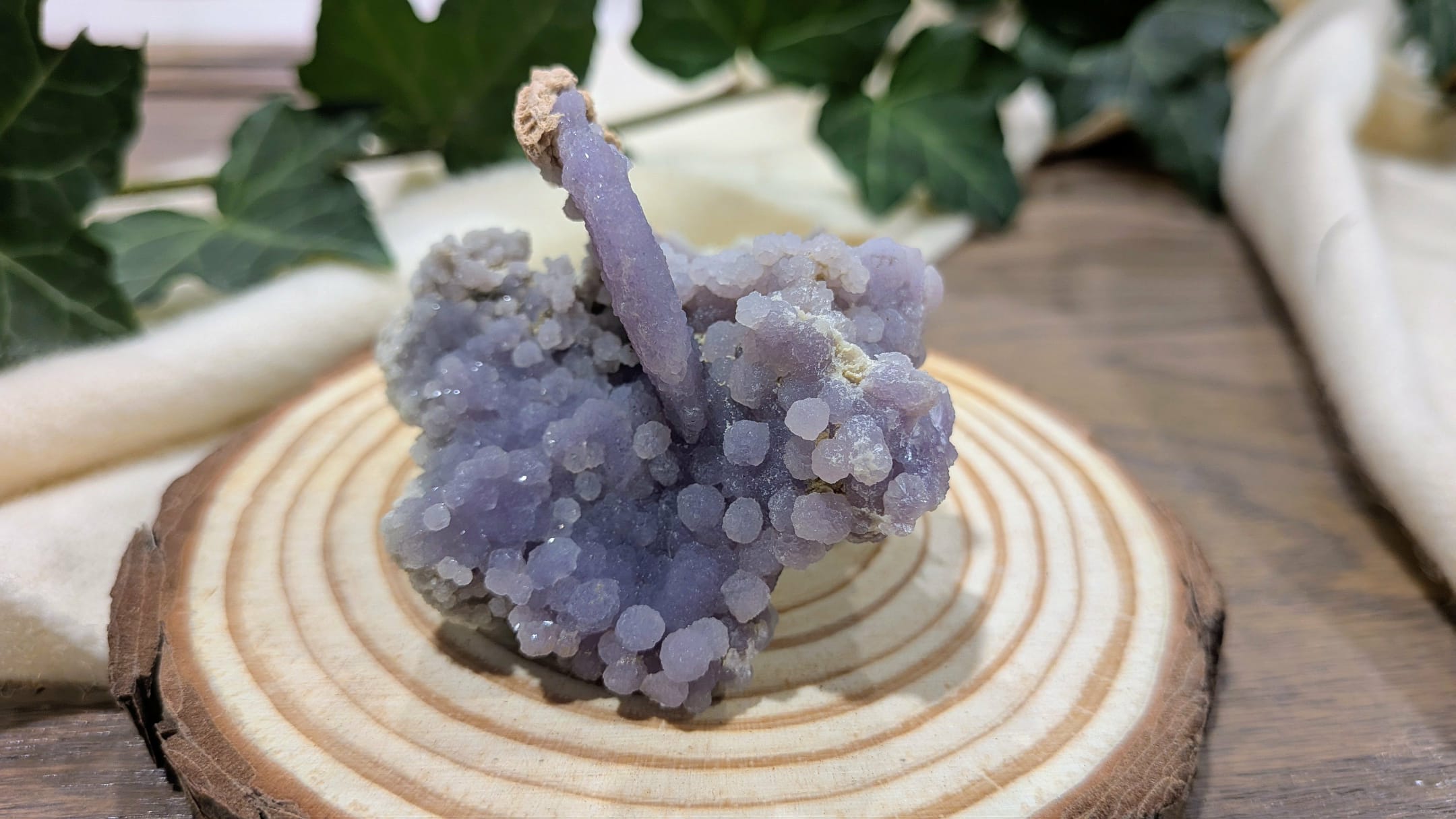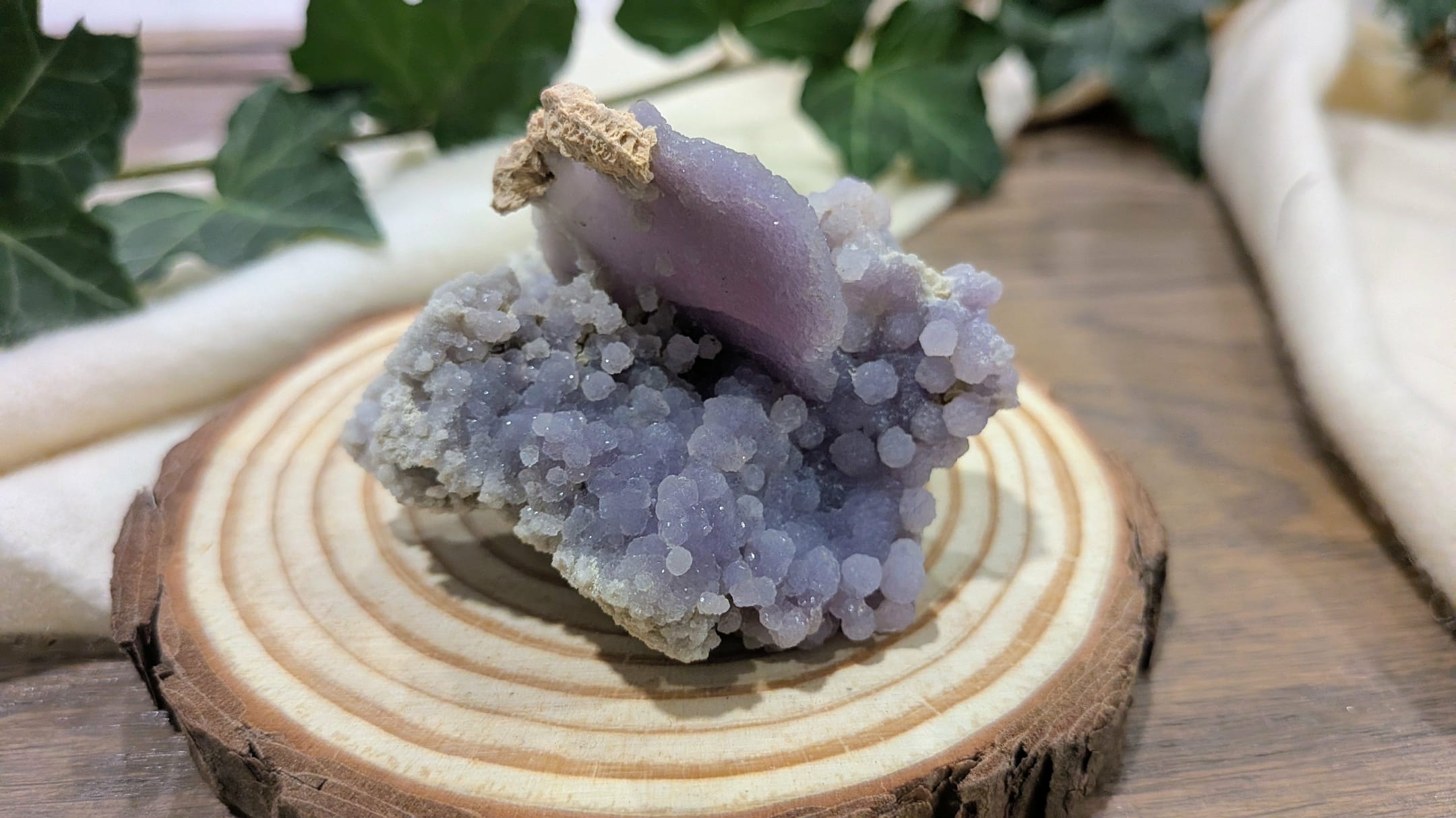 Grape Agate Chalcedony forms as tiny spheres that cluster like night-cooled berries, slowly knitting themselves together over centuries in soft, shadowed caverns.Known as the "Stone of Lucid Dreaming and Inner Knowing," this unique form of chalcedony gently ushers the holder toward profound intuition and self-discovery. It carries a calm, feminine energy that facilitates a deeper connection to the subconscious, teaching the lesson that the most soothing truths are found in quiet reflection.